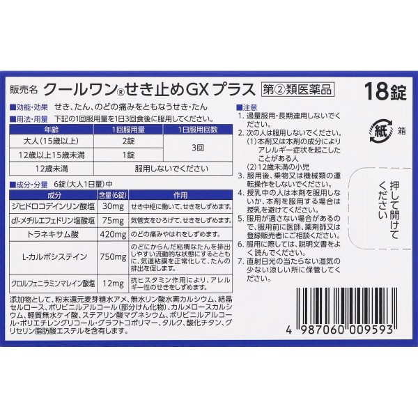 쿨원 기침약GX플러스 18정 쿄린제약 > 분제·과립·정제·캡슐