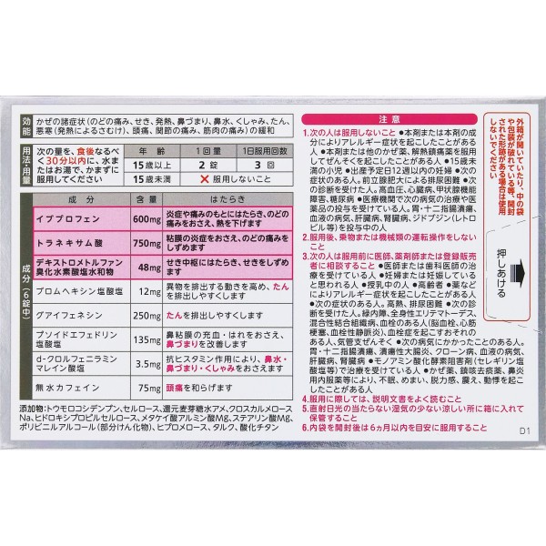 ·이부프로펜을 600mg(1일량) 배합하여, 목의 통증을 억제하고 열을 내립니다.
