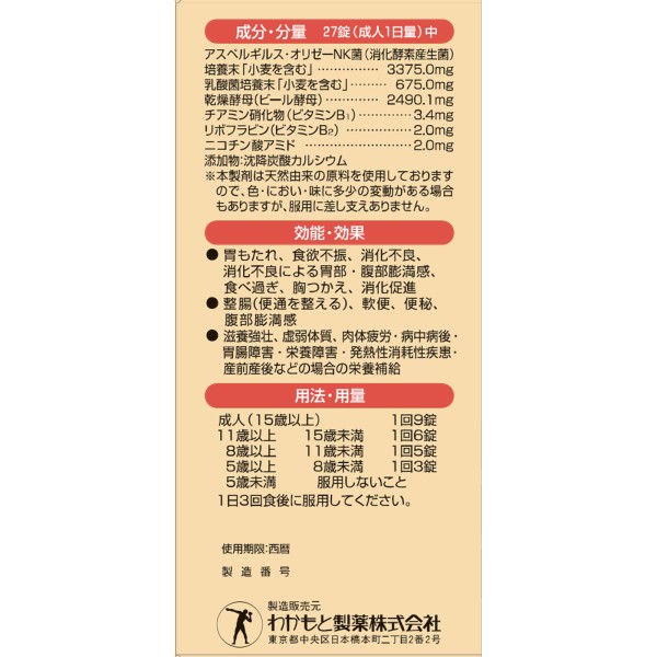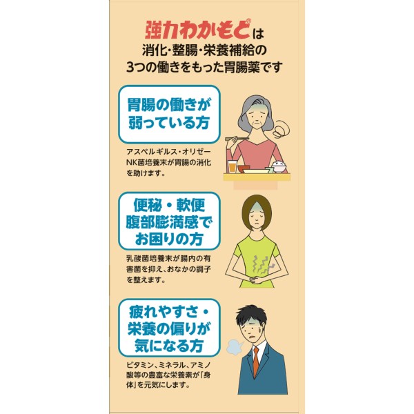 강력 와카모토는, 소화·정장·영양 보급의 3가지 작용을 가진 위장약입니다.