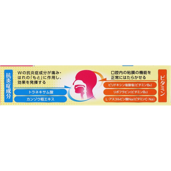●항염증 성분 트라넥삼산이 염증의 원인에 작용하여, 구내나 목의 통증·부기 등의 증상을 개선합니다.