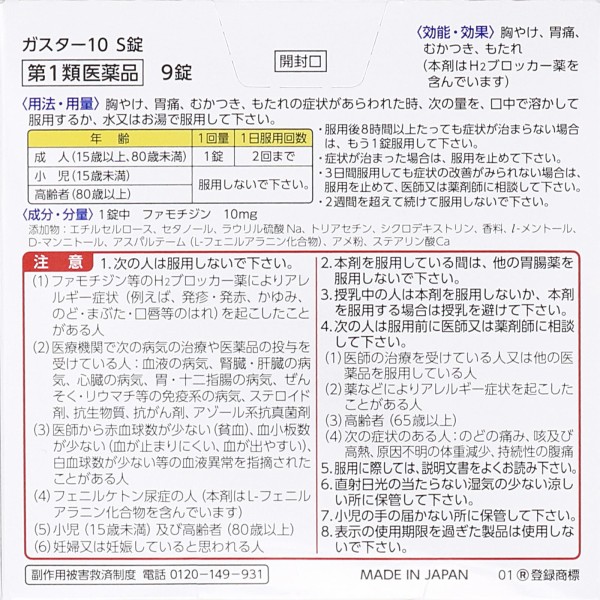 가스터10 S정 9정 다이이치산쿄 헬스케어 > 점막 보호
