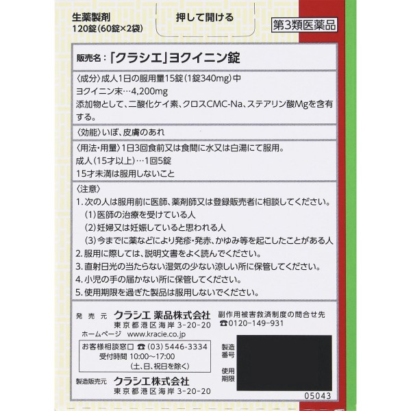 한방세라피 요쿠이닌정 TH 120정 크라시에 > 한방약(크라시에)