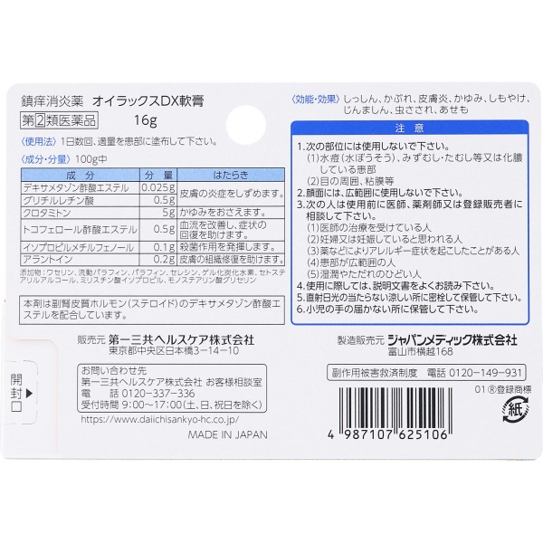 오이라쿠스 DX연고 16g 다이이치산쿄 헬스케어 > 스테로이드제