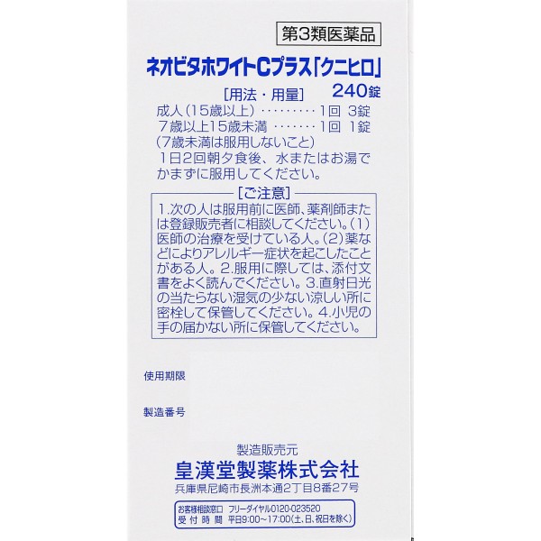 네오비타화이트 C플러스 「쿠니히로」 240정 코칸도제약 > 시스테인 제제