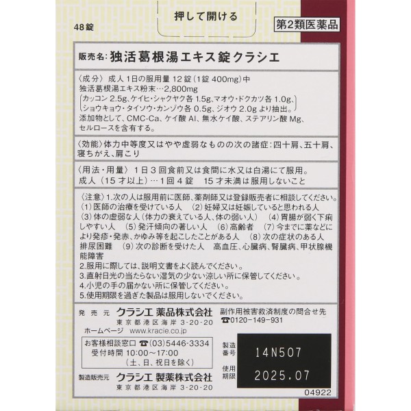 독카츠 카코콘토 엑기스정 크라시에 48정 크라시에 > 한방약(크라시에)