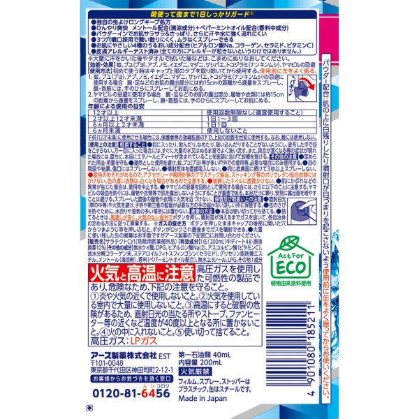 살라텍트 쿨 모기 방충 스프레이 아웃도어 캠핑 공원 외출 해충 대책 시원상쾌 200ml 아스제약