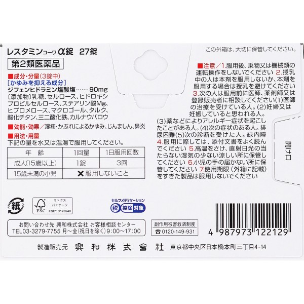 레스타민코와 알파정 27정 코와 > 내복약 (가려움)