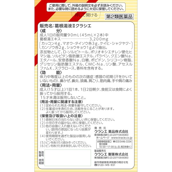 크라시에의 한방 갈근탕액 II 45mL×2병 크라시에 > 한방 (갈근탕)