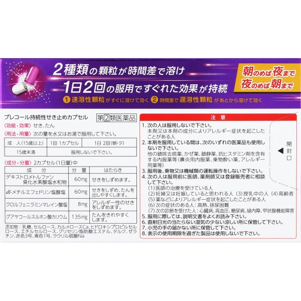프리콜 지속성 기침멈춤 캡슐 10캡슐 다이이치산쿄 헬스케어 > 분제·과립·정제·캡슐
