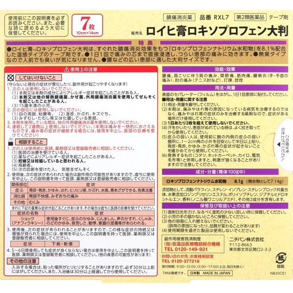 로이히고 록소프로펜 대판 7매 니치반 > 플라스타 (온감)