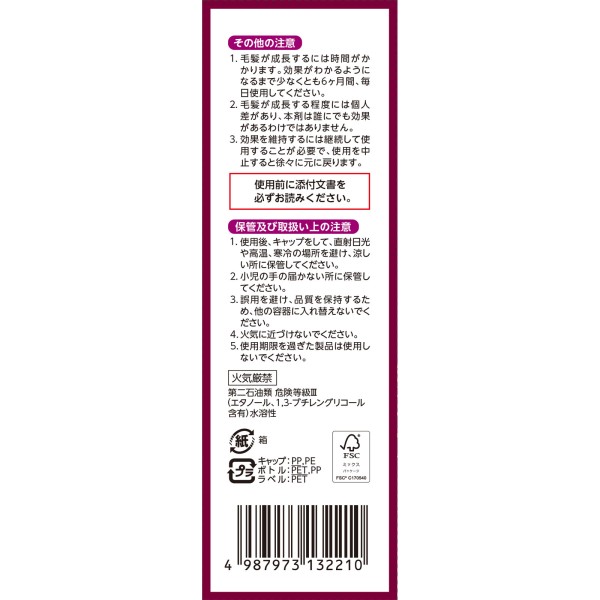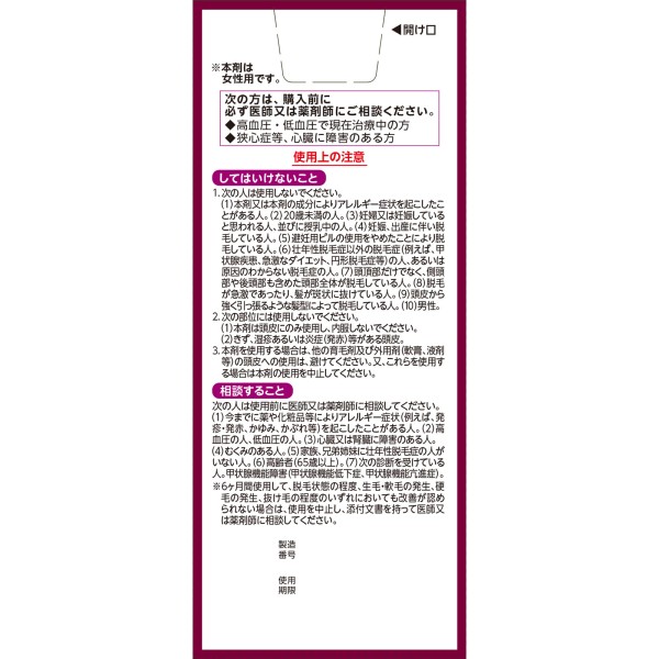 ●발모 효과에 확실한 에비던스가 있는 미녹시딜을 1.0% 배합하고 있습니다.