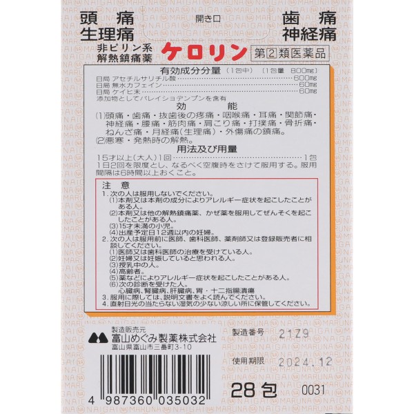 케로린 28포 토야마메구미제약 > 아스피린 주성분