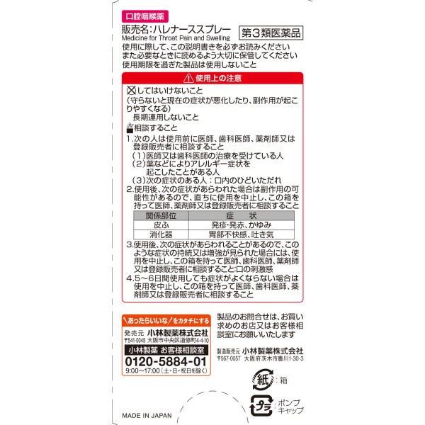하레나스 스프레이 15ml 고바야시제약 > 목 스프레이