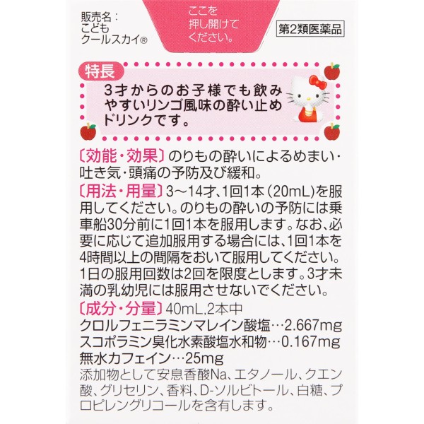 어린이 쿨스카이 (키티) 20ml×2병 히사미츠제약 > 소아용 멀미약