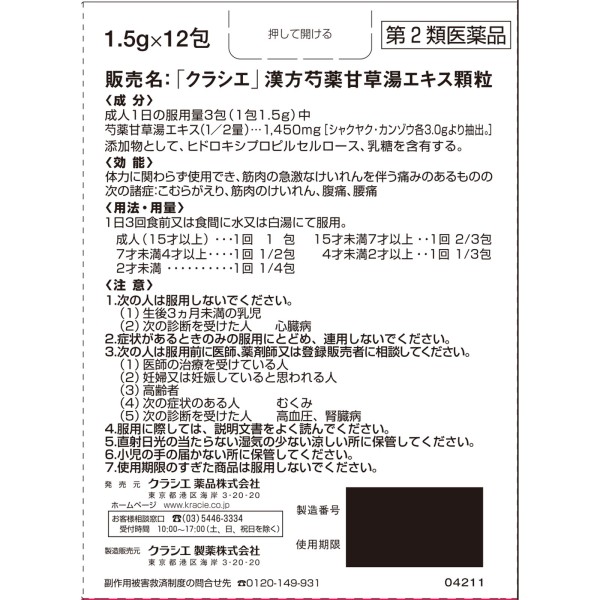 「크라시에」한방 작약감초탕엑기스과립 12포 크라시에 > 한방약(크라시에)