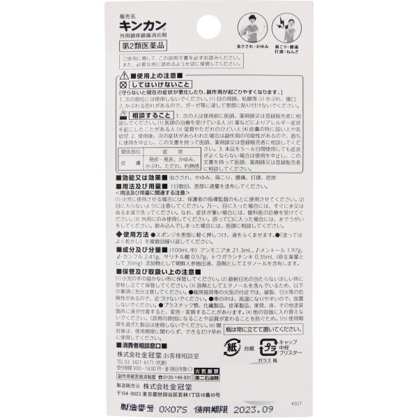 킨칸은 유효 성분이 복합적으로 작용하여, 빠르게 환부의 열을 빼앗고 국소 자극을 줌으로써,