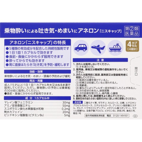 아네론「니스캡」 4캡슐 에스에스제약 > 멀미약