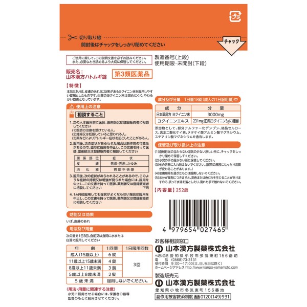 요쿠이닌정 252정 야마모토한방 > 민간약