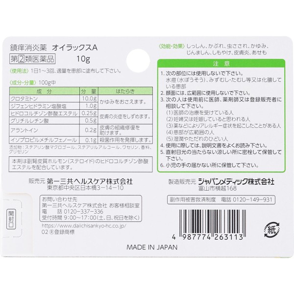 오이라쿠스A 10g 다이이치산쿄 헬스케어 > 스테로이드제