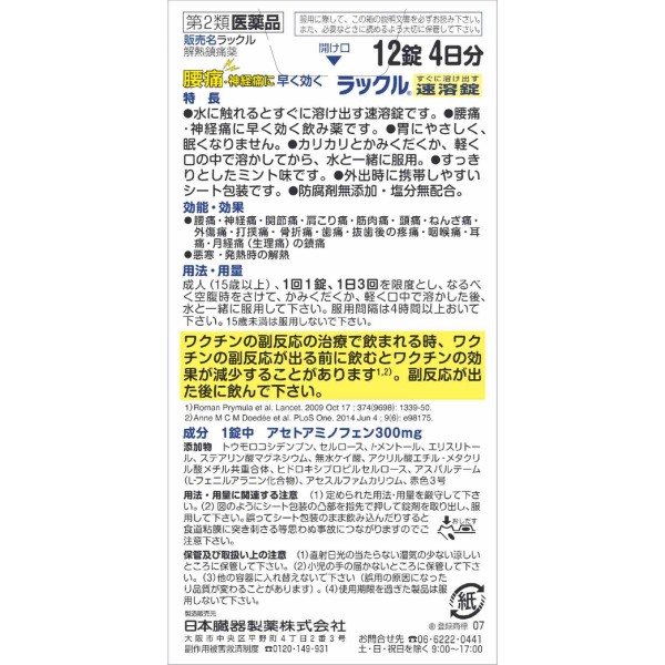 라쿠루 12정 니혼조키제약 > 아세트아미노펜 주성분