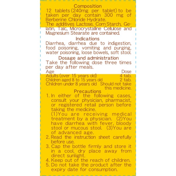 염화베르베린을 주성분으로 한 설사·식중독·물갈이·무른변 등에 효과가 있는 설사 멈춤약입니다.