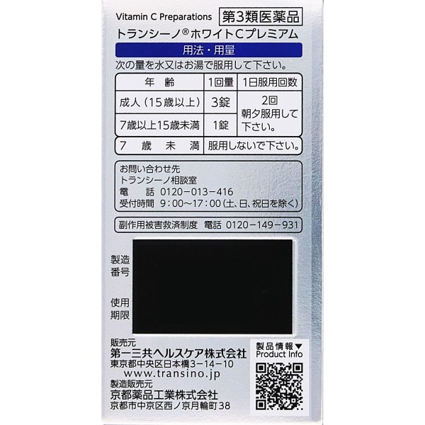 트란시노 화이트C프리미엄 90정 다이이치산쿄 헬스케어 > 시스테인 제제