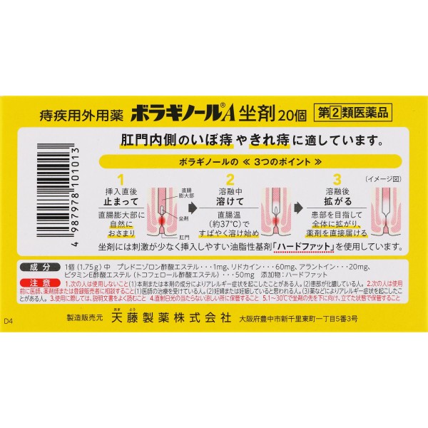 보라기놀A 좌제 20개 텐도제약 > 좌약