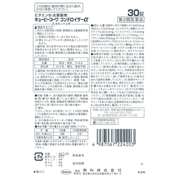 큐피코와 콘드로이자알파 30정 코와 > 콘드로이틴 제제
