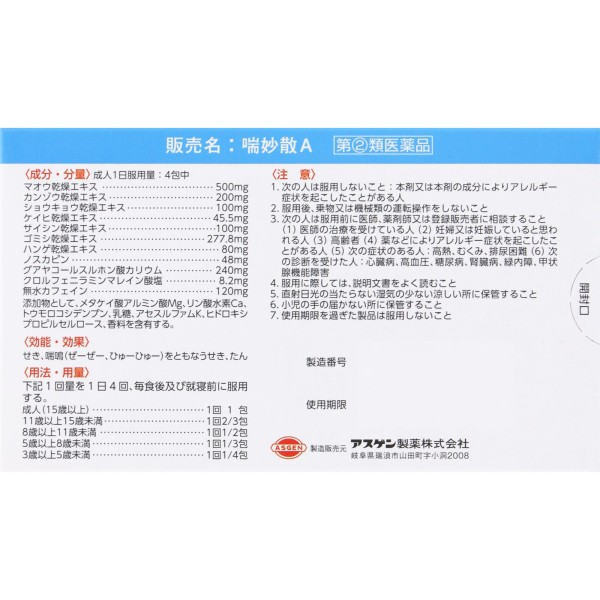 젠묘산A 16포 아스겐제약 > 분제·과립·정제·캡슐