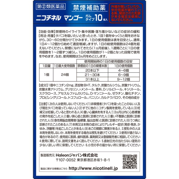 니코티넬 망고 10개 헤이리온재팬 > 금연 보조제