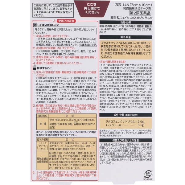 페이타스Z알파 지크사스 14매 히사미츠제약 > 플라스타 (냉감)