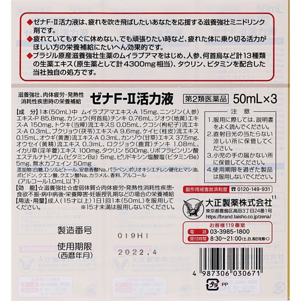 제나F2 활력액 50ml×3본 다이쇼제약 > 의약품