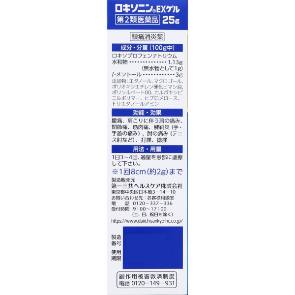 록소닌EX겔 25g 다이이치산쿄 헬스케어 > 크림·젤
