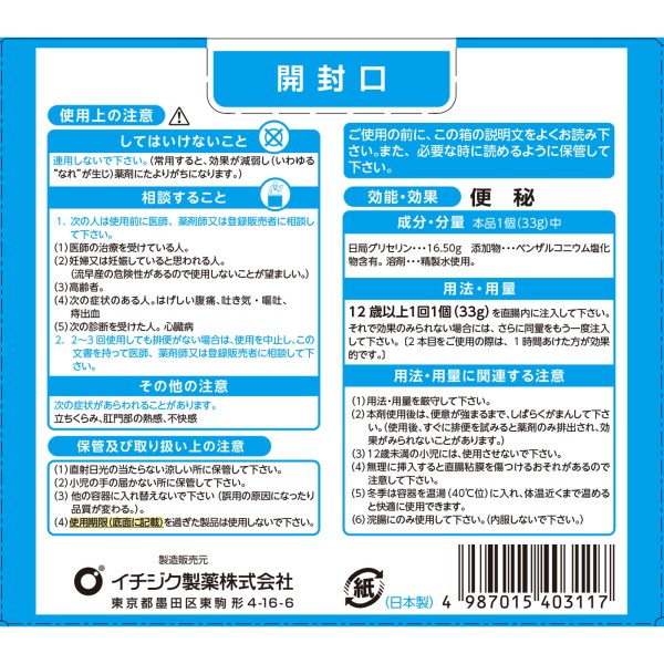 이치지쿠 관장33 33g×5 이치지쿠제약 > 관장