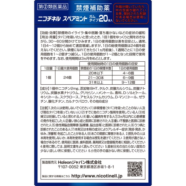 니코티넬 스피어민트 20개 헤이리온재팬 > 금연 보조제