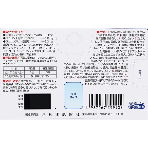 코루겐코와 비염필름 쿨알파 18매 코와 > 비염약 (1일 3회)
