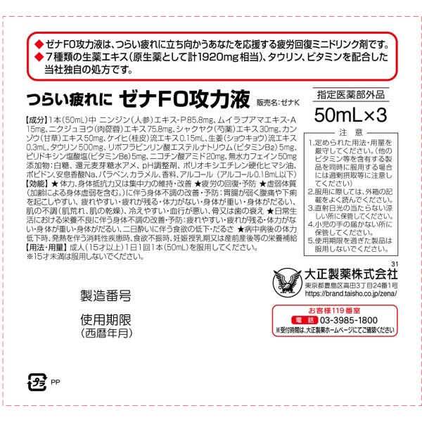 제나F0 코우랴쿠액 50ml×3본 다이쇼제약 > 의약품