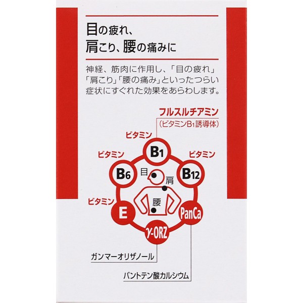 ●비타민B1 유도체 풀술티아민, 비타민B6, 비타민B12를 배합하여, 「눈의 피로」「어깨 결림」「허리 통증」 등 힘든 증상에 뛰어난 효과를 나타냅니다.