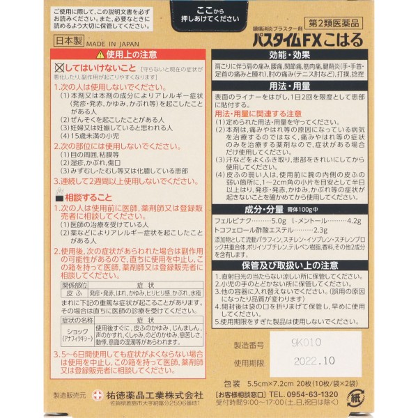 파스타임FX 코하루 20매 유토쿠약품공업 > 플라스타 (냉감)