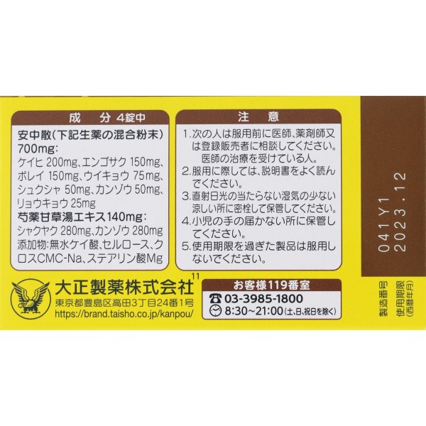 안중산과 작약감초탕의 조합으로, 평소 위장이 약하고 불규칙한 식생활이나 여름 탈진 등으로 위장이 불쾌한, 식욕이 나지 않는 분에게 적합한 위장약입니다.