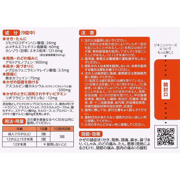●아세트아미노펜을 비롯한 8가지 유효 성분이 감기 제증상(기침, 발열, 두통, 코