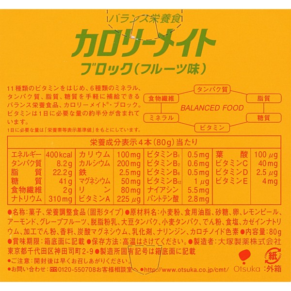 칼로리메이트 블록 후루츠맛 80g 오츠카제약 > 칼로리메이트