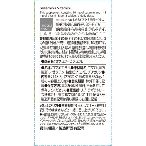 마츠키요 LAB 세사민+비타민E 270립 > 참깨