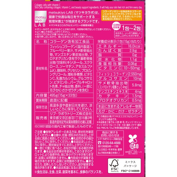 마츠키요 LAB 콜라겐 젤리 블루베리맛 33포 > 콜라겐