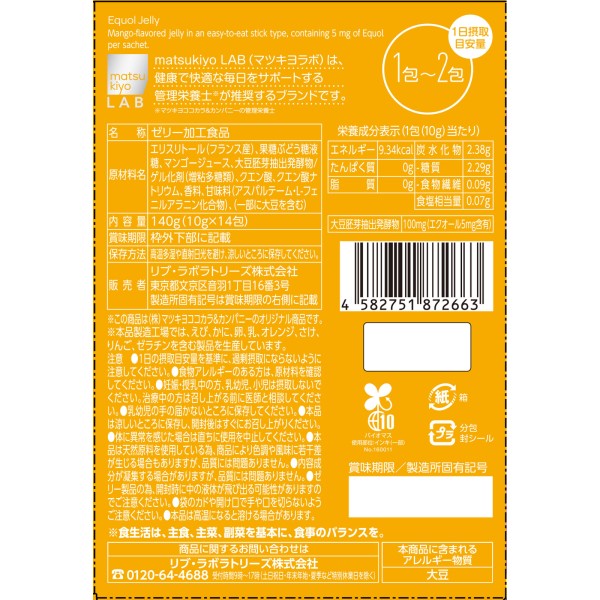 마츠키요 LAB 에쿠올 젤리 망고맛 14포 > 대두·이소플라본