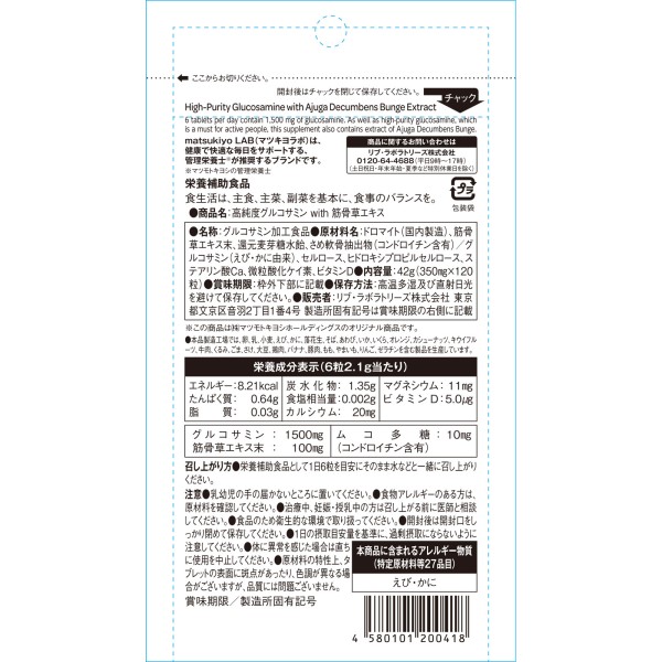 마츠키요 LAB 고순도 글루코사민 with 근골초 에키스 120알 > 글루코사민