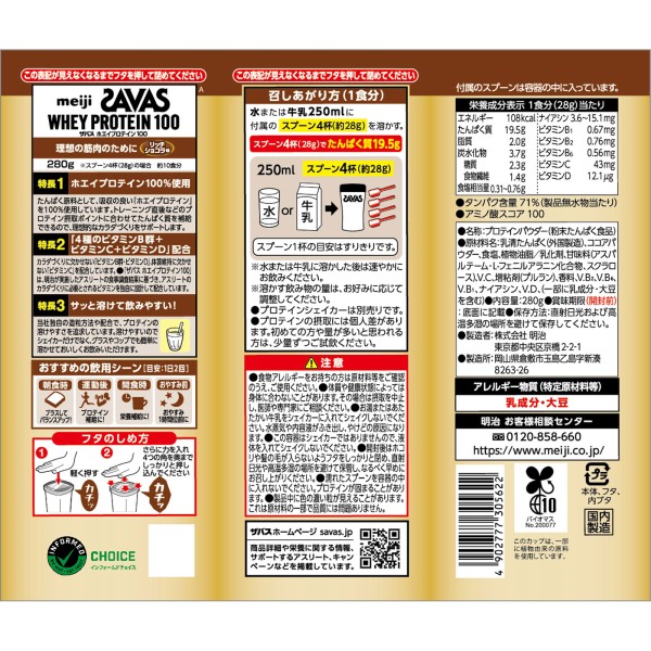SAVAS 훼이 프로테인100 쇼콜라 14식 280g 메이지 > 자바스