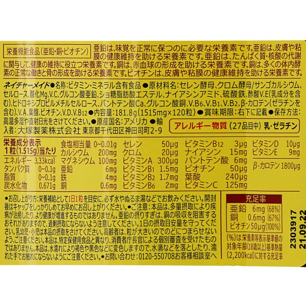 네이처메이드 슈퍼 멀티비타민&미네랄 120T 오츠카제약 > 종합 비타민제