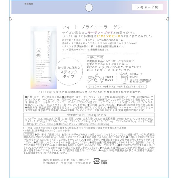 크기가 다른 콜라겐 펩타이드와 시간을 들여 천천히 녹는 다중구조 비타민C 비즈를 1포에 담은, 뷰티 습관을 서포트하는 영양기능식품.