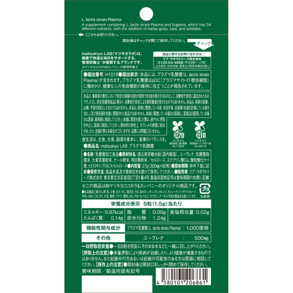 마츠키요 LAB 면역케어 플라즈마 유산균 with 유글레나 90알 > 그린 차지